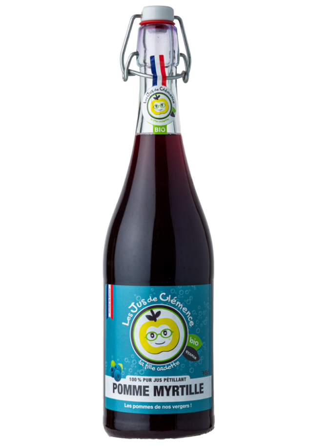 Caractéristiques du pétillant pur jus de pomme myrtille bio 0.75cl - Les Jus de Clémence